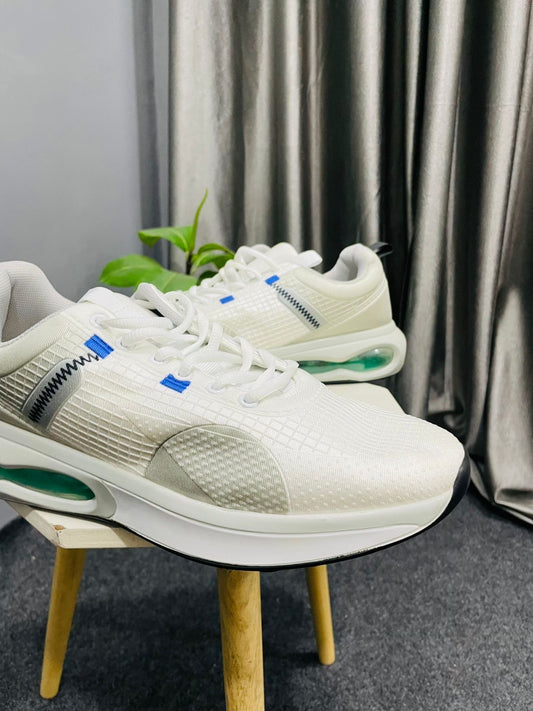 Men's White Cushioned Running Shoes - Green Air Sole Lightweight Trainers