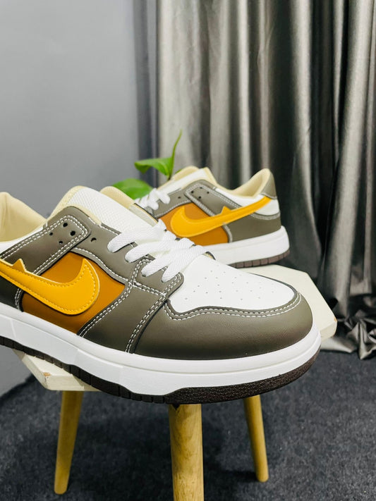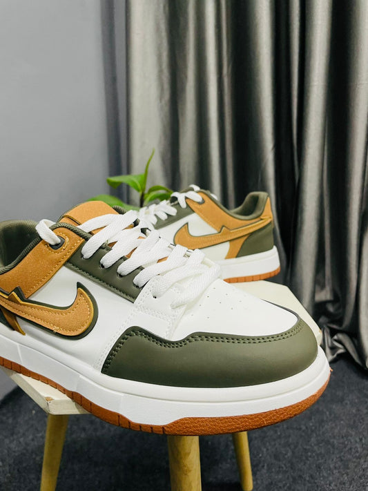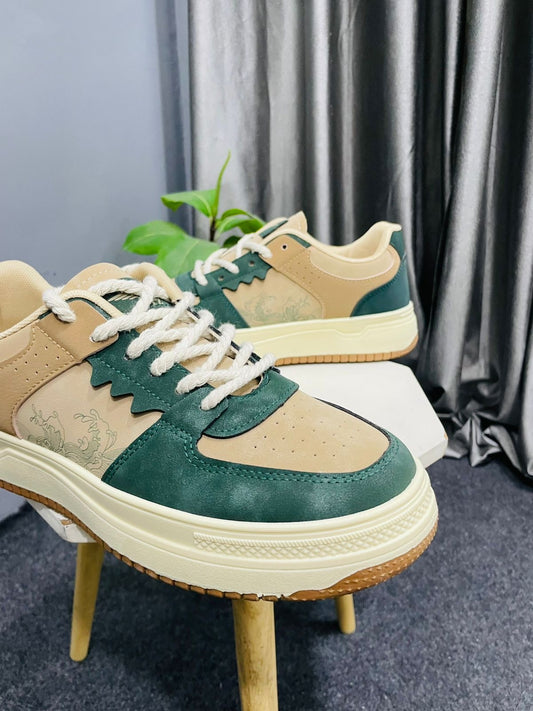 Men's Tan & Green Fashion Sneakers - Low-Top Casual Shoes with Design