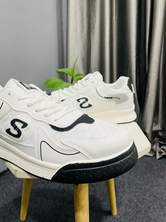 Men's White & Black Athletic Sneakers - Modern Casual Sport Shoes