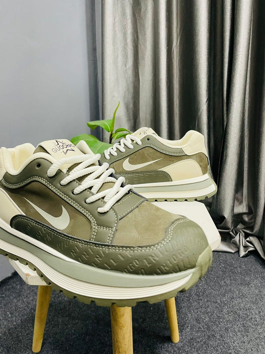 Trendy Khaki Green Platform Trainers - Comfortable Men's Streetwear Shoes