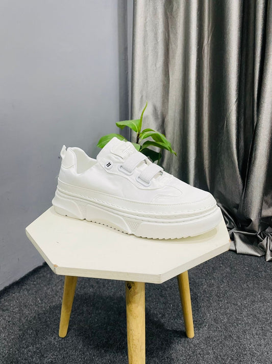 Men's All-White Chunky Sneakers - Trendy Velcro Strap Casual Shoes